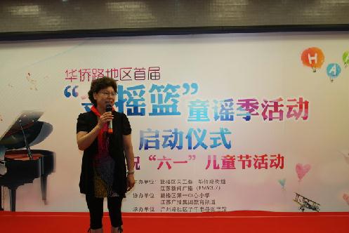 在启动仪式上,华侨路街道刘东生书记宣读华侨路地区首届“金摇篮”童谣季活动宣传倡议,区关工委王红云常务副主任祝小朋友们节日快乐并宣布活动开幕。随后,一中心小学、拉萨路小学、师院附小的孩子们表演了精彩的节目。